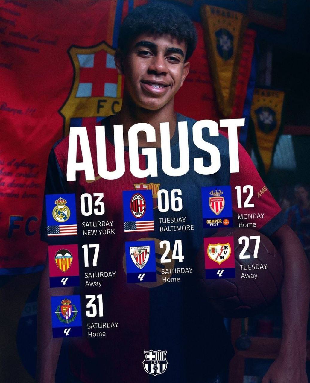 إليك جدول مباريات نادي برشلونة لشهر أغسطس 2024: