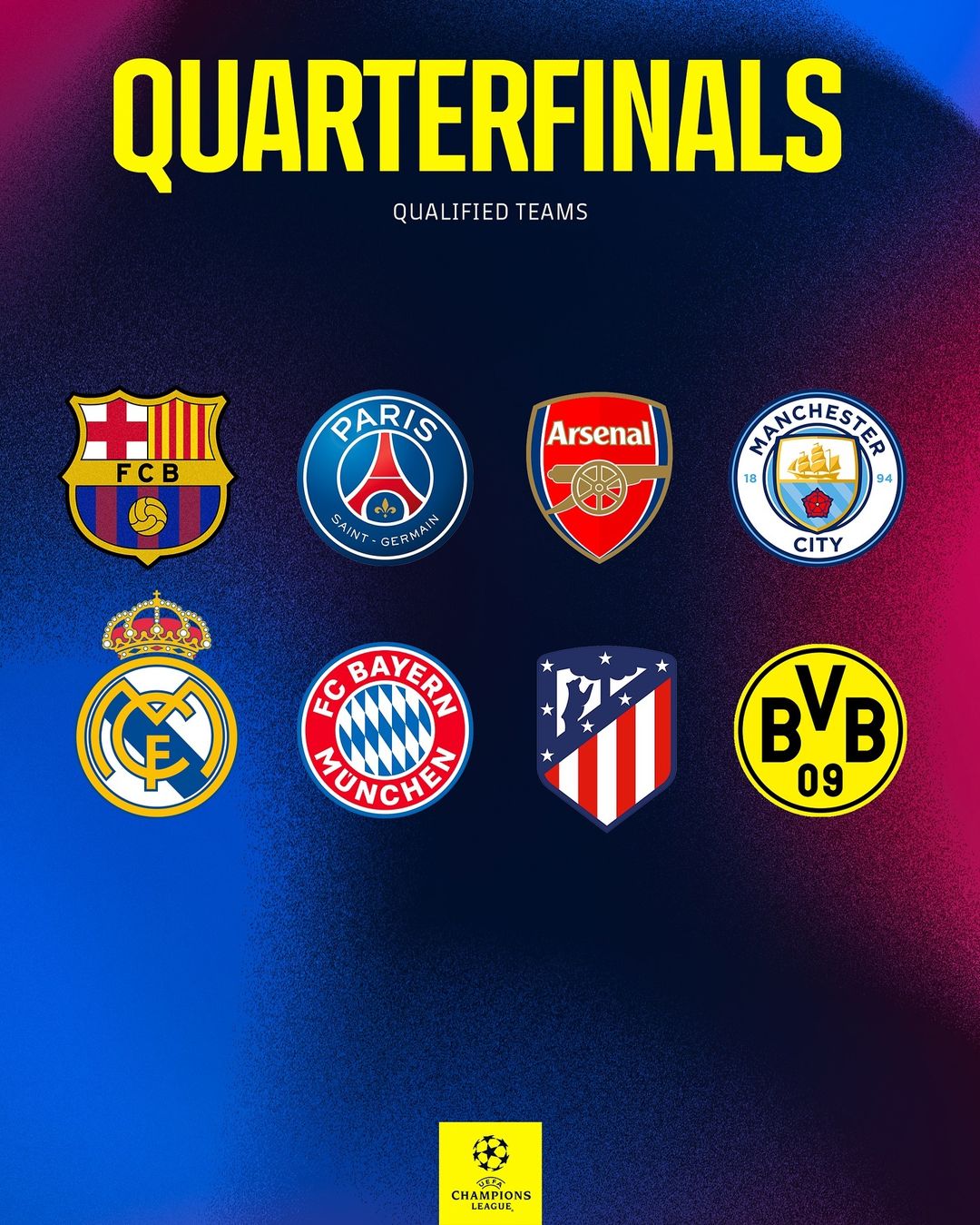 رسمياً آلفرق المتأهلة الى ربع نهائي دوري أبطال آوروبا 2024