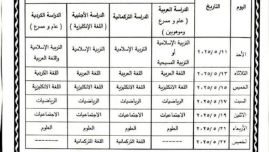 جدول امتحانات السادس الابتدائي الدور الاول 2025