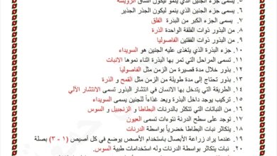 نرفق اليكم نسخة من اسئلة امتحان مادة العلوم السادس الابتدائي للامتحانات التمهيدية 2025