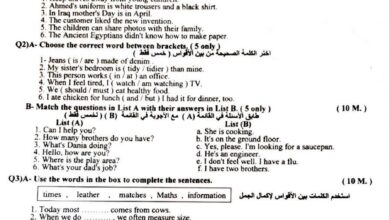 اجوبة امتحان الانكليزي السادس الابتدائي الدور الثاني 2024