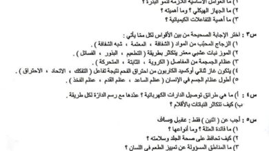 حصريا نرفق اليكم نسخة من اسئلة امتحان مادة العلوم للصف السادس الابتدائي الدور الثاني للعام الدراسي الحالي 2024