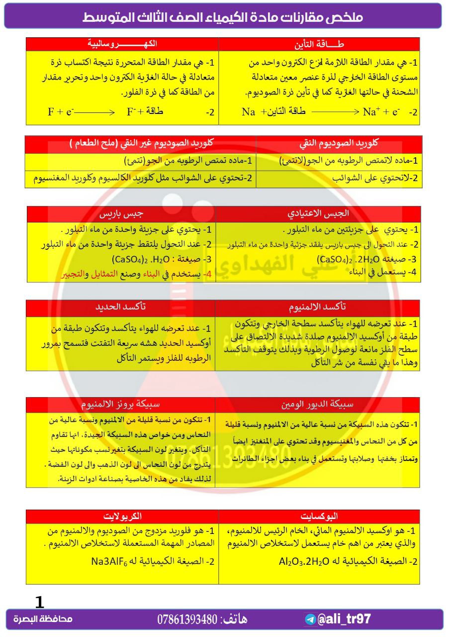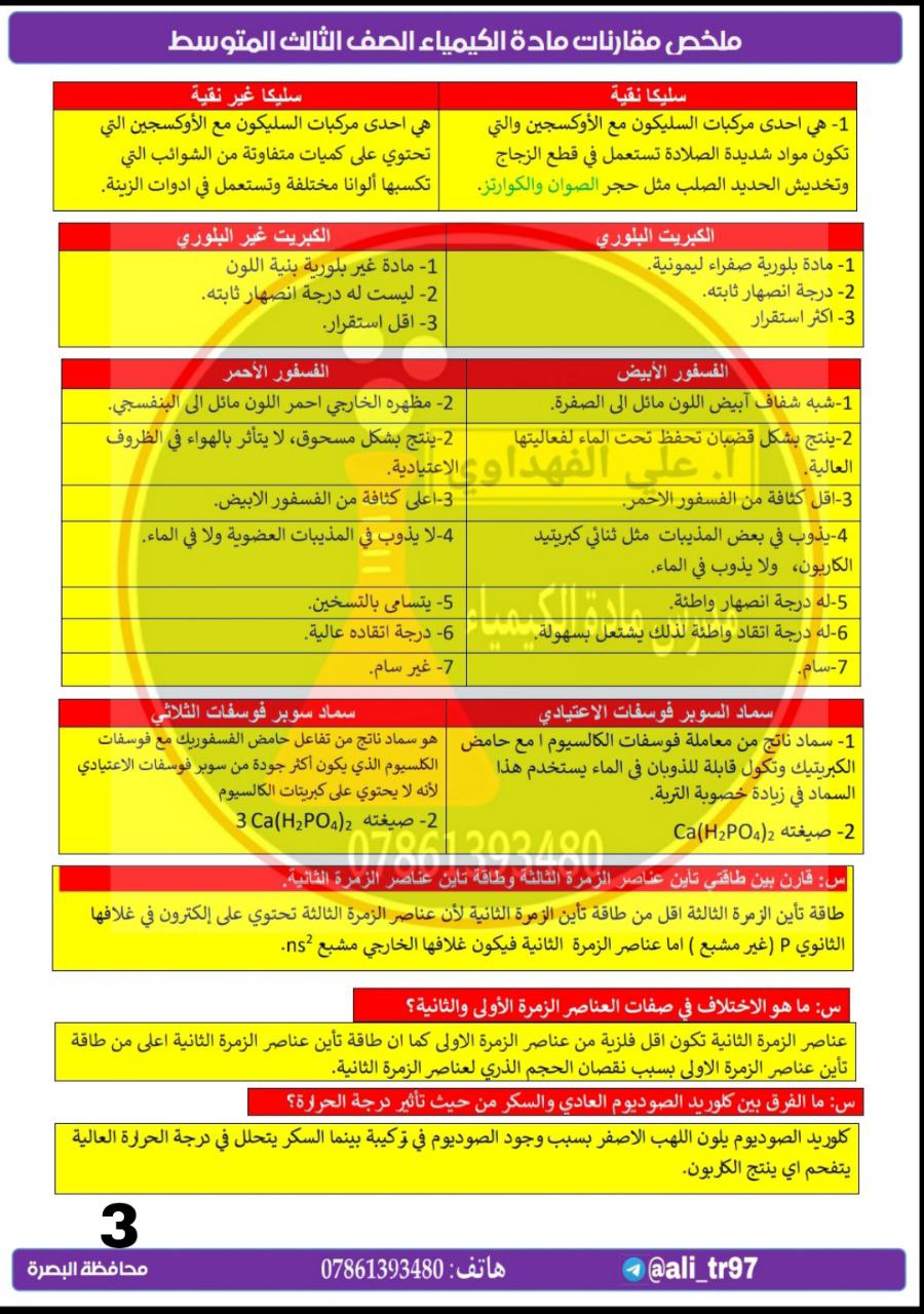 اليكم ملخص جميع مقارنات مادة الكيمياء للصف الثالث المتوسط للعام الدراسي 2024