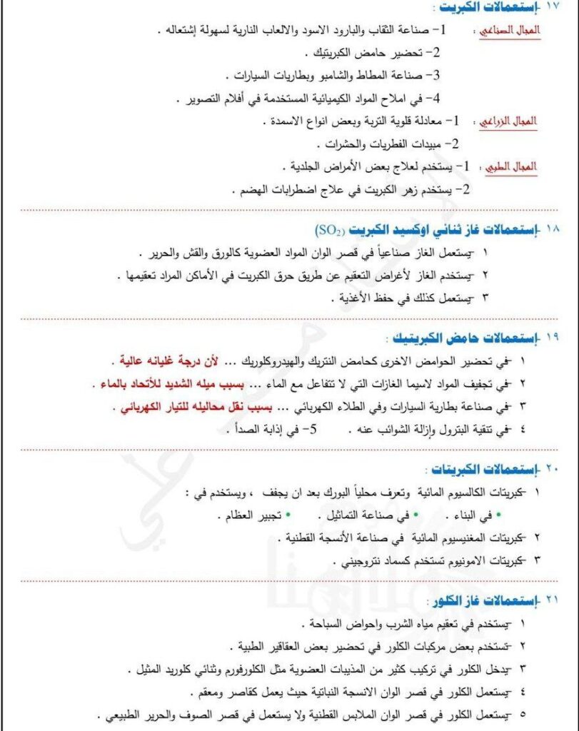 الاستعمالات مادة الكيمياء ثالث متوسط 2026