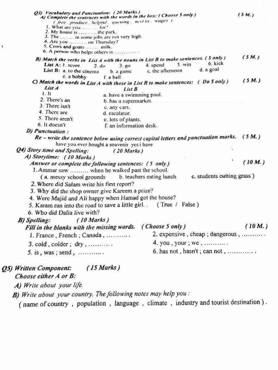 اسئلة اللغة الانكليزية الثالث المتوسط الدور الاول 2024