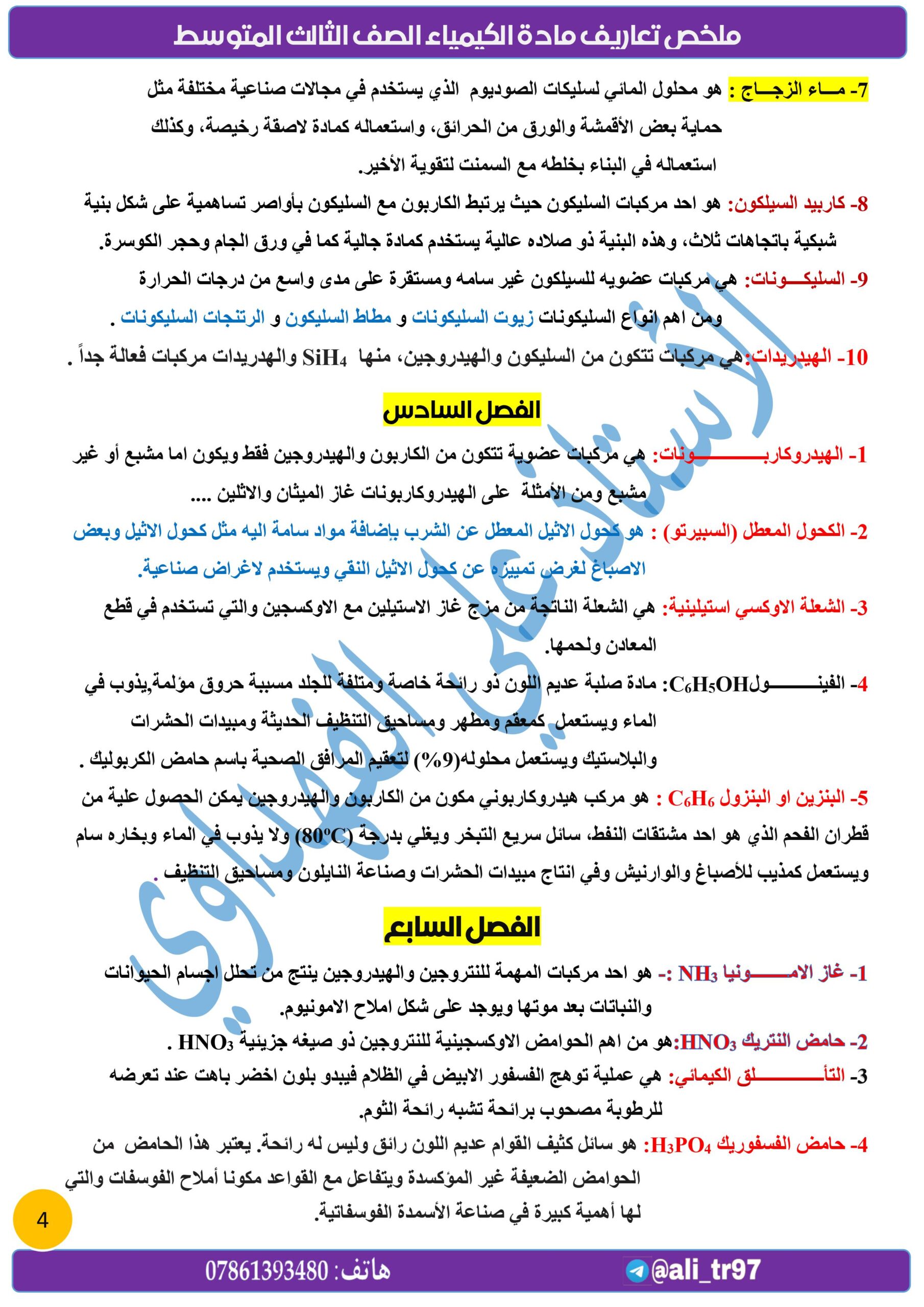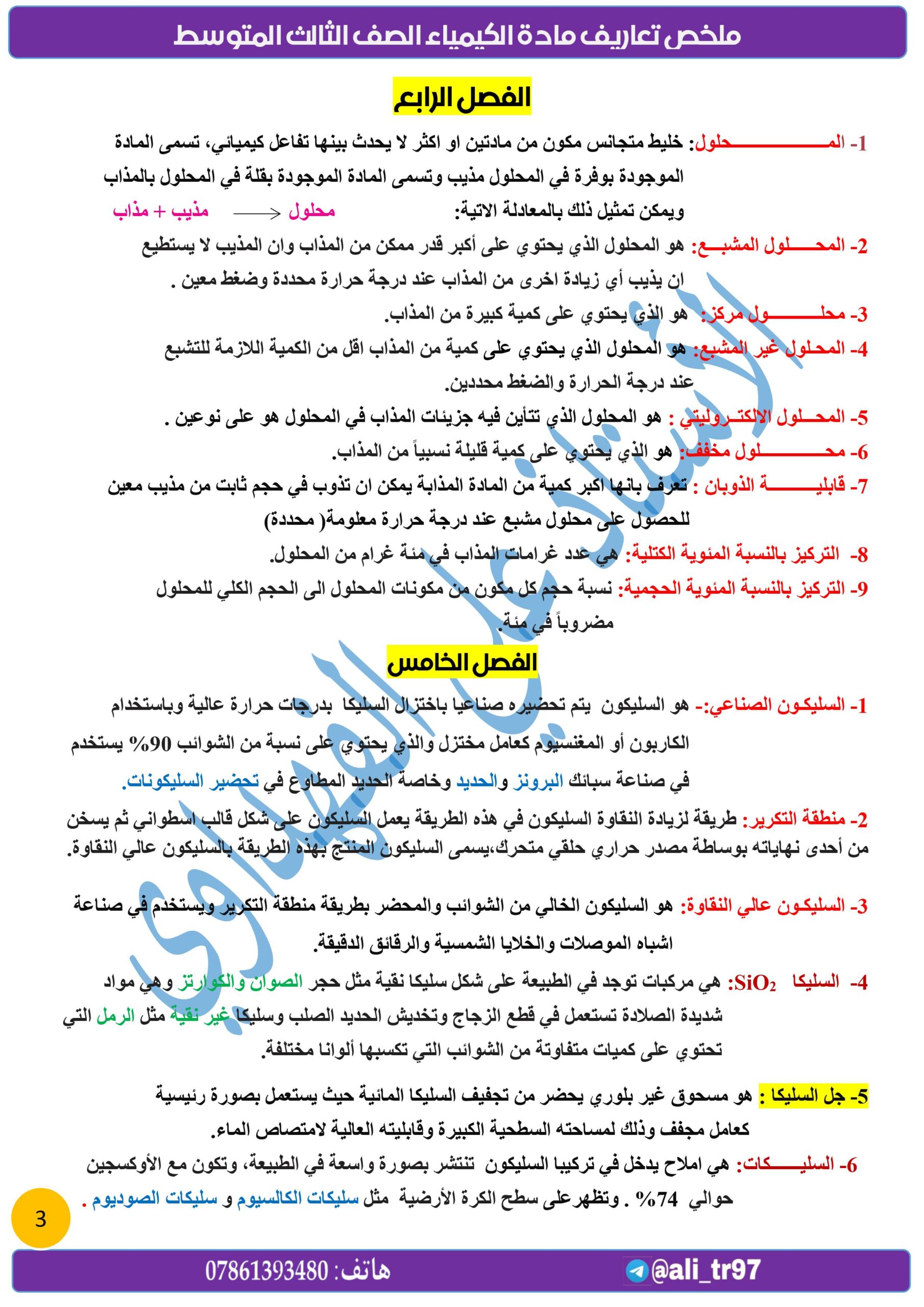 حصريا نرفق اليكم جميع تعاريف مادة الكيمياء للصف الثالث المتوسط مرتبه حسب الفصول للعام الدراسي 2024