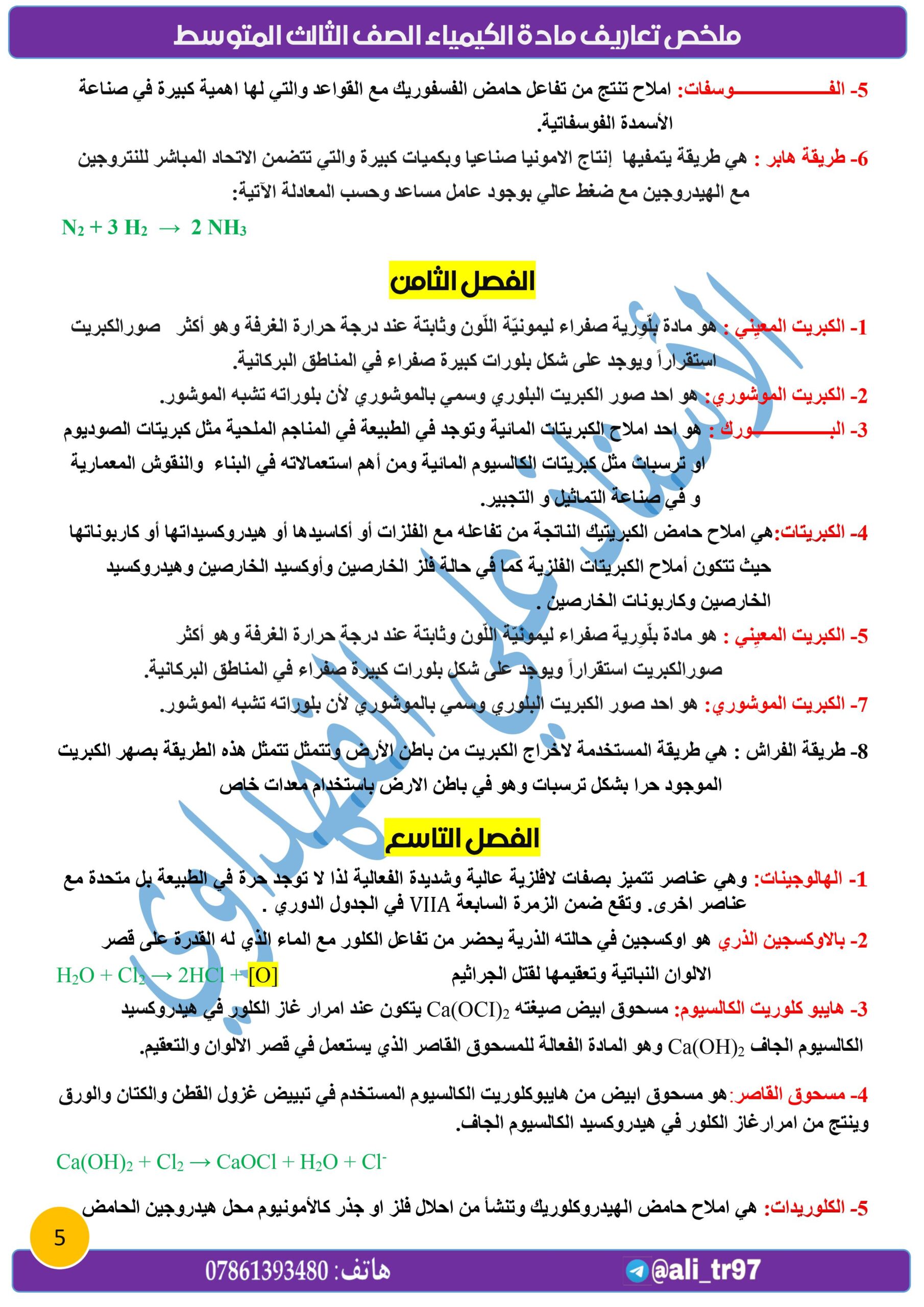 جميع تعاريف مادة الكيمياء الصف الثالث المتوسط 2024