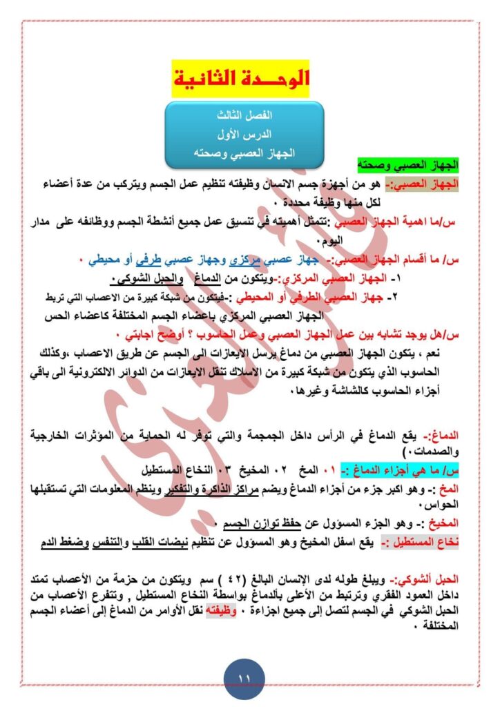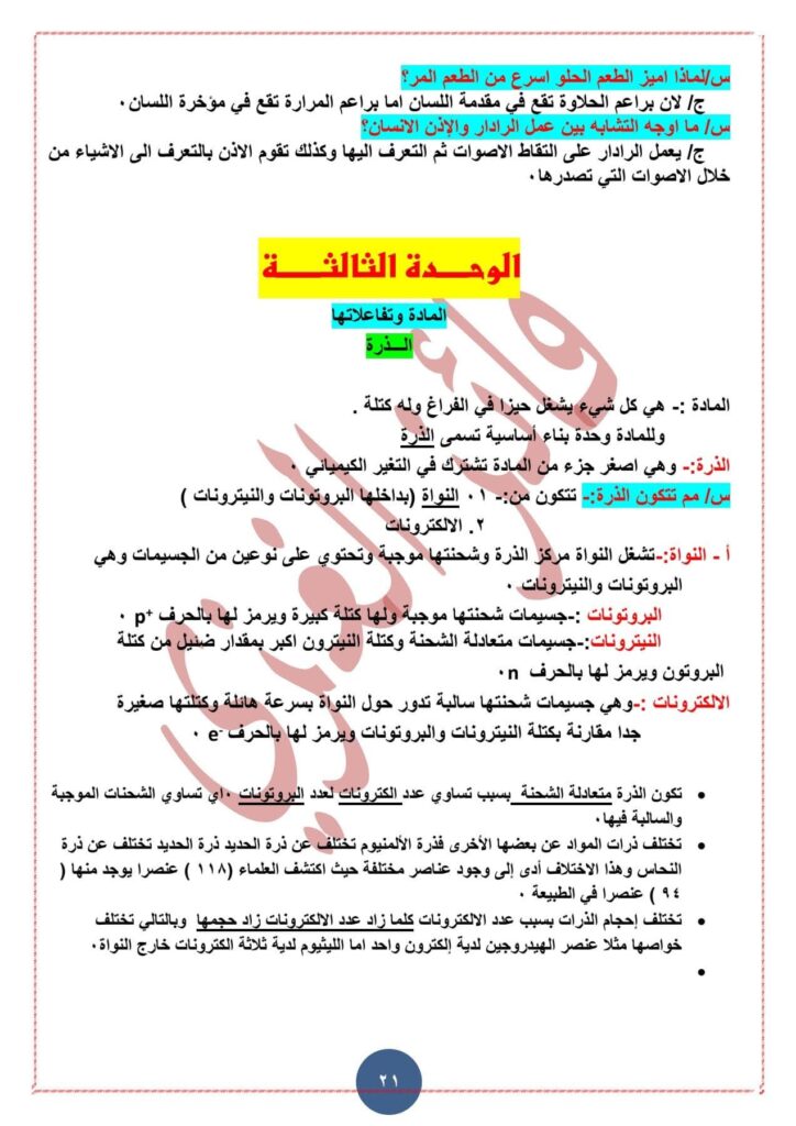 ملخص الوحدة الثانيه لعلوم الصف السادس الابتدائي 2025