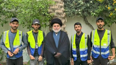 أحدث صورة لزعيم التيار الوطني الشيعي “مقتدى الصدر” مع العمال
