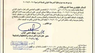 أعلنت وزارة التعليم العالي والبحث العلمي في العراق، عبر كتاب رسمي صادر عن دائرة الدراسات والتخطيط والمتابعة، عن موعد بدء…