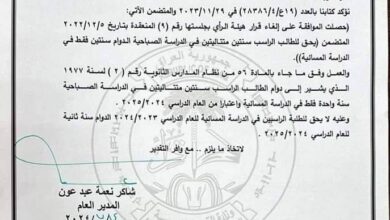 وزارة التربية تحدد عدد سنوات الدوام للدراسة الصباحية والمسائية