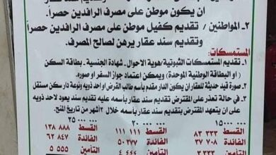 ضوابط وشروط قروض العقارية من مصرف الرافدين