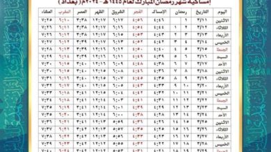امساكية الوقف السني شهر رمضان في العراق 2024