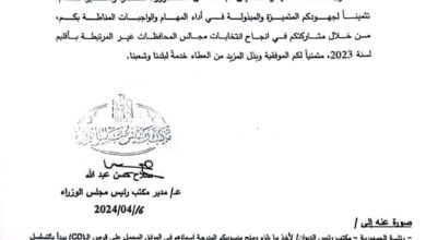 قائمة الشكر من رئاسة الوزراء للمشاركين في انتخابات مجالس المحافظات
