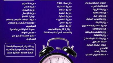 توقيتات بدء وانتهاء ساعات الدوام الرسمي في الوزارات والجامعات والكليات بعد عيد الفطر لمدة ثلاثة أشهر