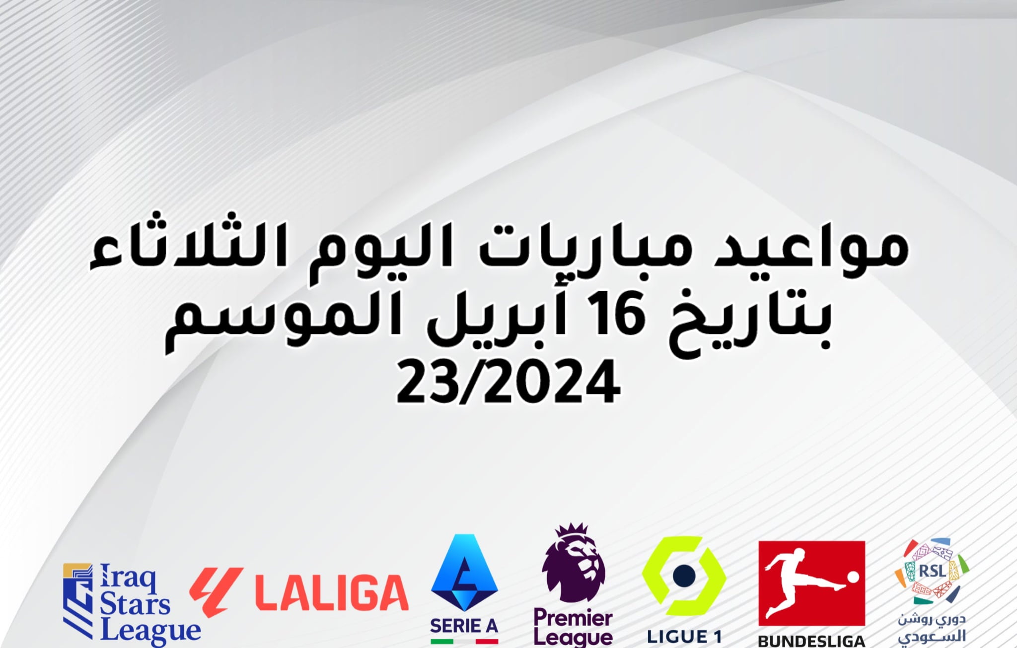 أبرز مباريات اليوم الثلاثاء 16 ابريل الموسم 23/24