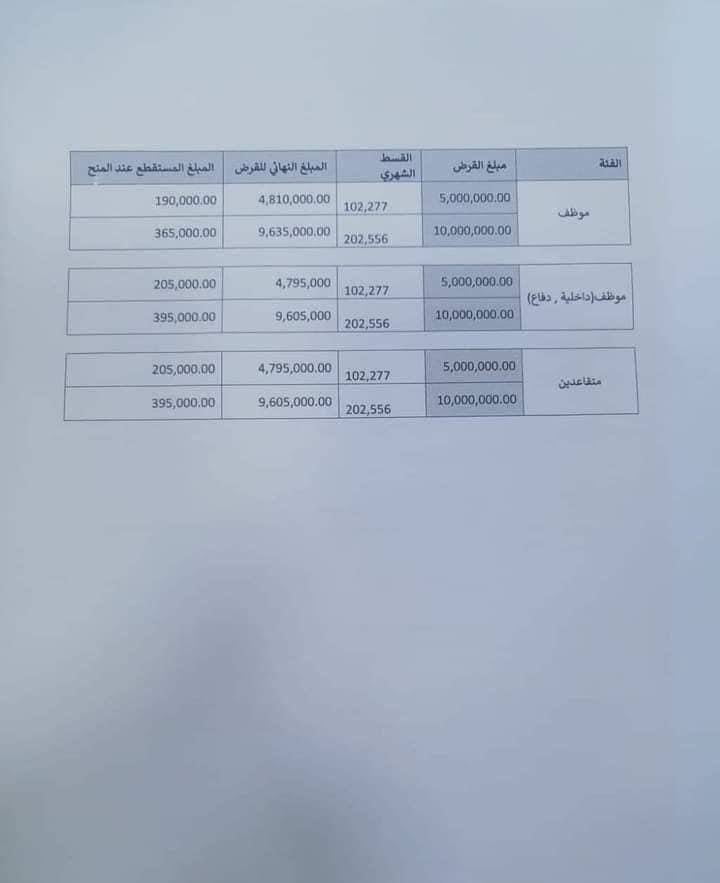 - يتراوح مبلغ القرض بين 5،10 مليون دينار.