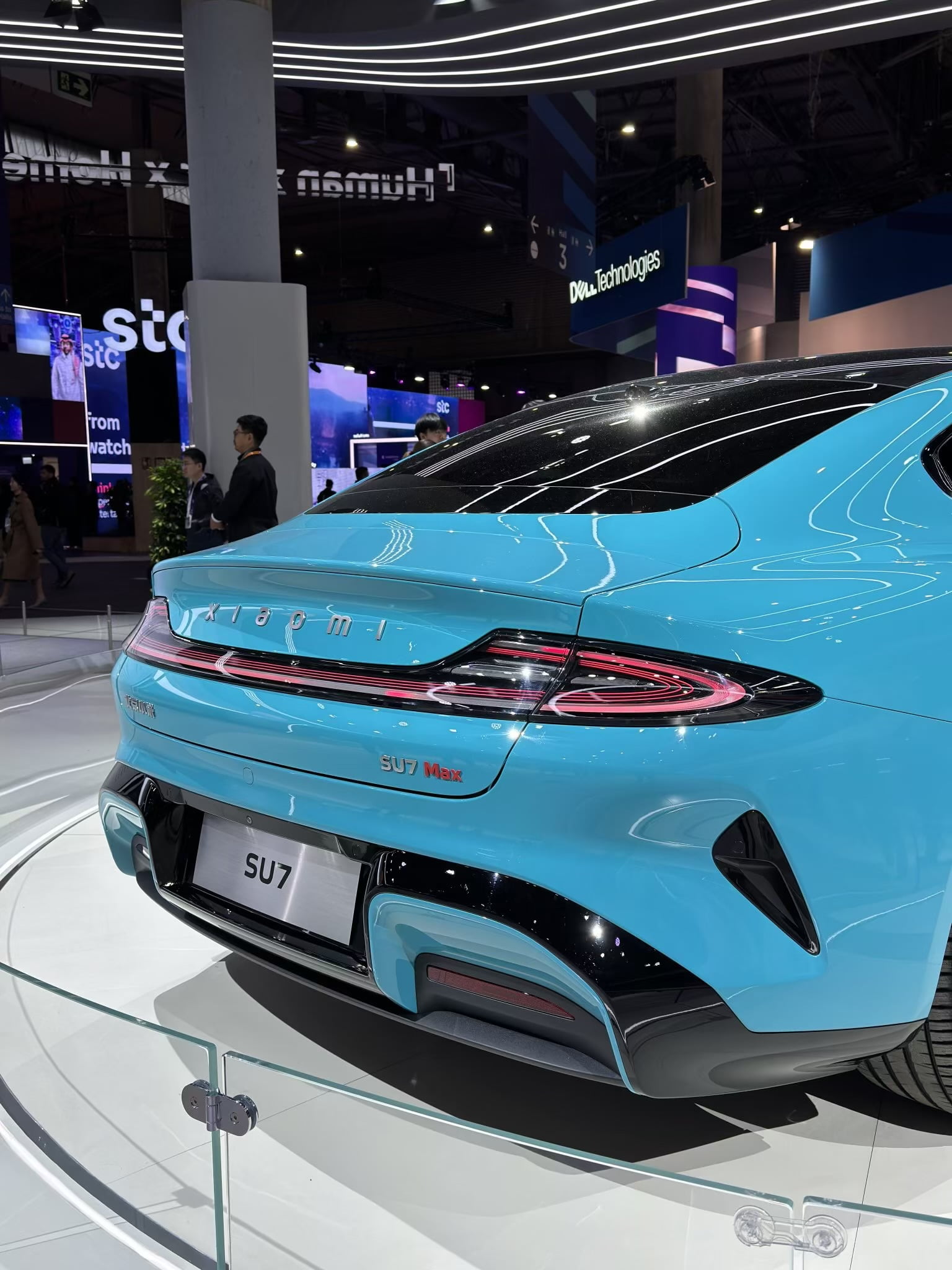 سيارتها Xiaomi SU7 في معرض MWC 2024